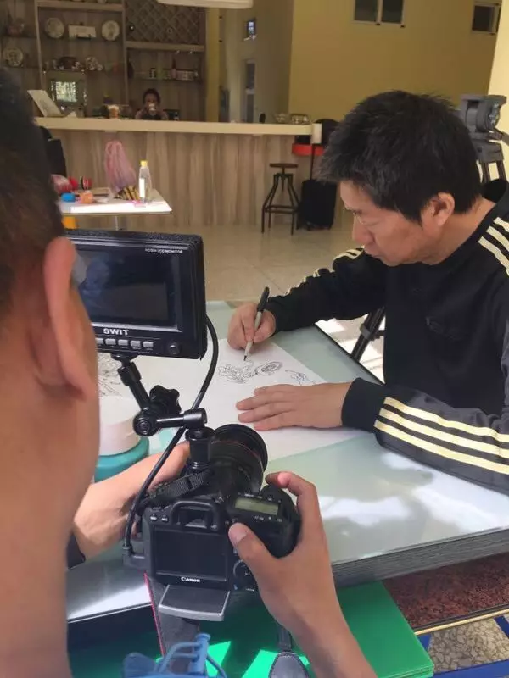 在花莲最后一天上午,也就是敖老师带我开车转悠回来后,在家里拍摄老师画画、种花、散步等等生活中的镜头,尽管是摆拍,但很真实。坐在高脚凳上,后面是空荡荡的厅落,两边是老师的画和书,面对镜头,他回答着我们的问题。画画画漫画,真的是件费时费心的寂寞工作。遗憾错过两个女儿的成长期,尽管漫画给他带来的丰厚的物质生活。不过寂寞的画画生活,让他学会了做菜,敖大师还成了敖大厨。