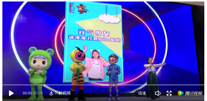 进入发布界面后,点击#话题, 输入并选择 #无动漫不青春 写下你想说的话并@中国国际动漫节发布即可~ 手势舞要怎么跳呢? 这里有可爱的小姐姐和卡通人偶教学哦!' 发布会上,中国原创动画代表、杭州动漫龙头企业——中南卡通也发布了根据天眼、香凌和乐比三个卡通明星形象专门研发的聪明可爱的全人工智能仿生模块教学服务机器人。 只要说出“你好,天眼”就可以唤醒它,与它沟通交流。触摸身上的感应器,机器人会做出相应的行为反馈,还可以把它当作百科全书,机器人现场还唱起了“我和我的祖国”。