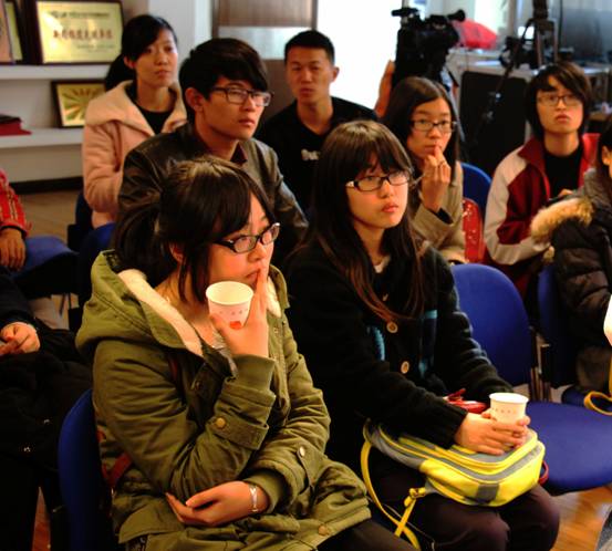 据了解,本次培训还吸引了浙江省特殊教育职业学院的的同学们,他们在带队老师的手语翻译下也积极参与互动。浙江省特殊教育职业学院是一所面向全省残疾学生的高职院校,参与本次培训的同学均来自于该校动漫专业,是通过杭州COSPLAY俱乐部微博了解到本次培训并报名参加的。在培训最后环节,还组织了爱好者们近距离研究小骨带来的几件实物,从实物中寻找问题提问,增加了培训的互动性。